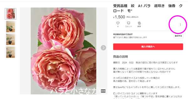 ひとつは、フリマサイトで挿し木のブランドバラ苗を購入しないこと。もうひとつは、違反出品を見つけたら「違反報告」することです。