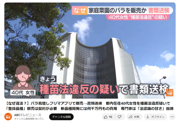今回は「バラの挿し木苗をフリマサイトに出品した女性が種苗法違反の疑いで書類送検された」というニュースの内容と、それを補足する情報をまとめて紹介しました。