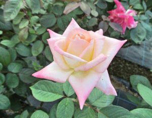 ラクライングリッシュガーデンを訪れたとき、オールドローズの苗を1鉢、購入しようと考えていたわたしは、近くにいたイギリス人ガーデナーに質問しました。