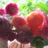 YOUピンク色がいいかなぁ、オレンジも可愛いし、紫もステキよね。やっぱり香りのいいバラが欲しいわ。ほんと、一人じゃ決められないわね!