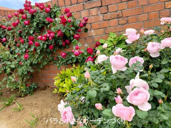 例えばレンガや土や緑でラインを作ったり、わざと緩やかなカーブを作った小径にしたり。それでいて広々と見えるように工夫した構図だったりと、ほかのバラ園と少し印象が違いました。