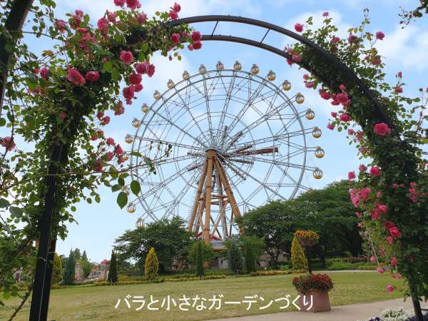 ▲バラのアーチの向こうに観覧車 写真提供/天女の舞子