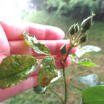ウドンコ病にかかったからといって枯れることはあまりありませんが、なにしろ見た目に悪いし、新芽がきちんと生長できない、つぼみがちゃんと花開かないということが起こります。広範囲に発症すると、ひどい生育障害に陥ります。