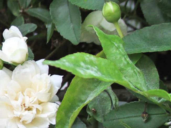 ▲ウドンコ病にかかった白モッコウバラ