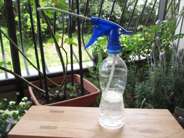 ▲家庭にあるもので作れる手作りウドンコ病退治剤「重曹オイルスプレー」