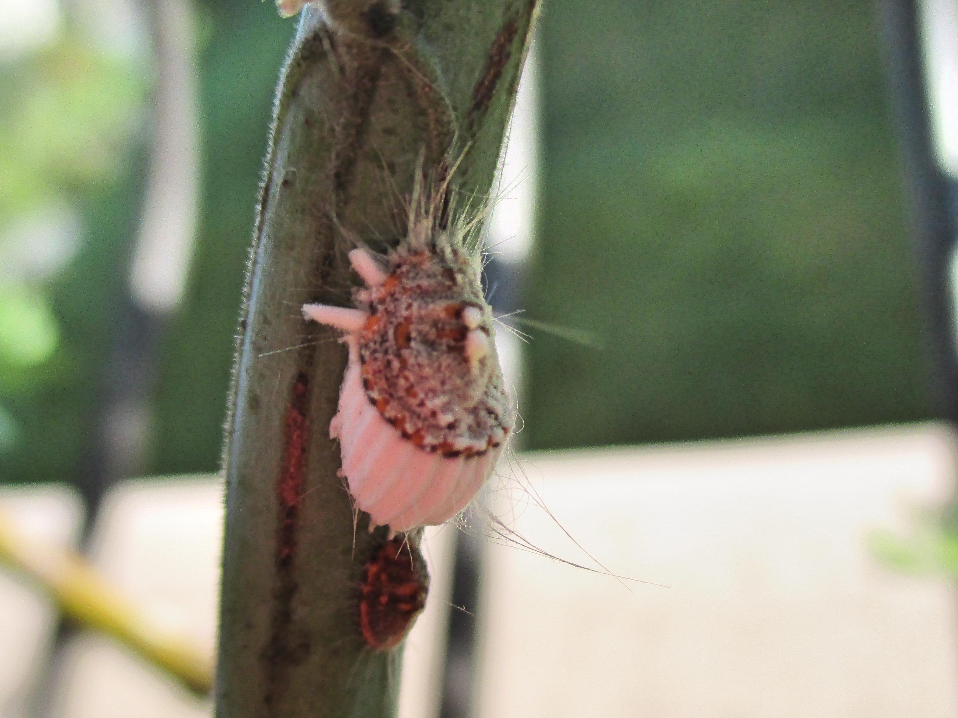 現在ではあまり見られなくなった貴重な(?)ワタフキカイガラムシ。ミモザの樹液をがっつり吸っているようだけど、さて、どうしようかな!?