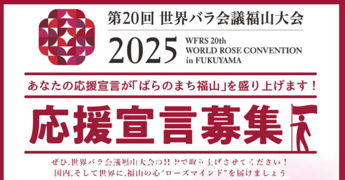 応援宣言は「第20回世界バラ会議福山大会公式サイト」から!