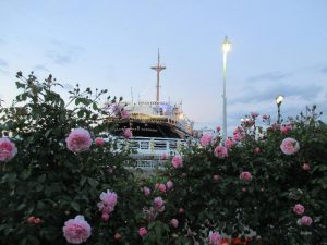 山下公園のほぼ中央、氷川丸の前には開園当時から沈床花壇があり、バラや季節の花々が植えられていました。この沈床花壇が、2017年、春に開催された全国都市緑化よこはまフェアに合わせて大規模リニューアルが施され、バラと宿根草いっぱいの美しい公園「未来のバラ園」に生まれ変わりました。