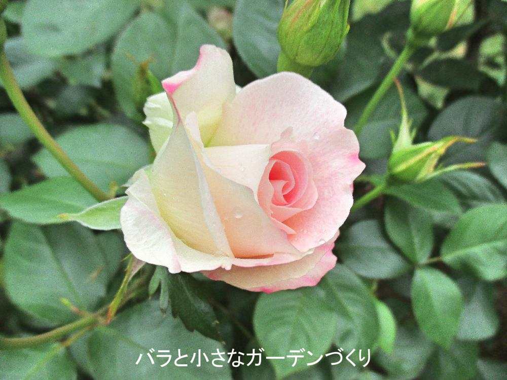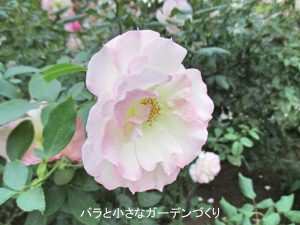 ごく淡いピンク色が花びらの端を縁どるマチルダは、花付きも花もちもよいバラです。春はもちろん秋にも賑やかに咲いてくれます。