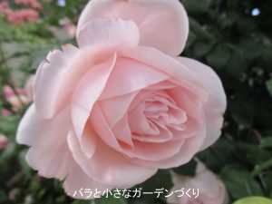 淡いピンク色で丸弁を繊細に重ね合わせたカップ咲き。花の中心がいくつもに分かれて渦を巻くクォーターロゼット咲きになることもあります。まず花の色と形がきれい!