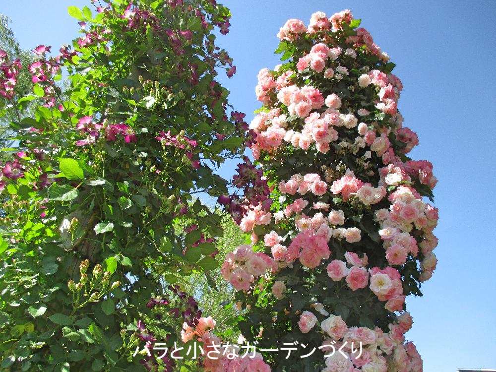 クライミング系統に属しますが、枝が細く扱いやすい。春の花つきは「桜霞」同様に素晴らしく、返り咲きも楽しめるつるバラです。枝先は2.5~3mまで伸びます。